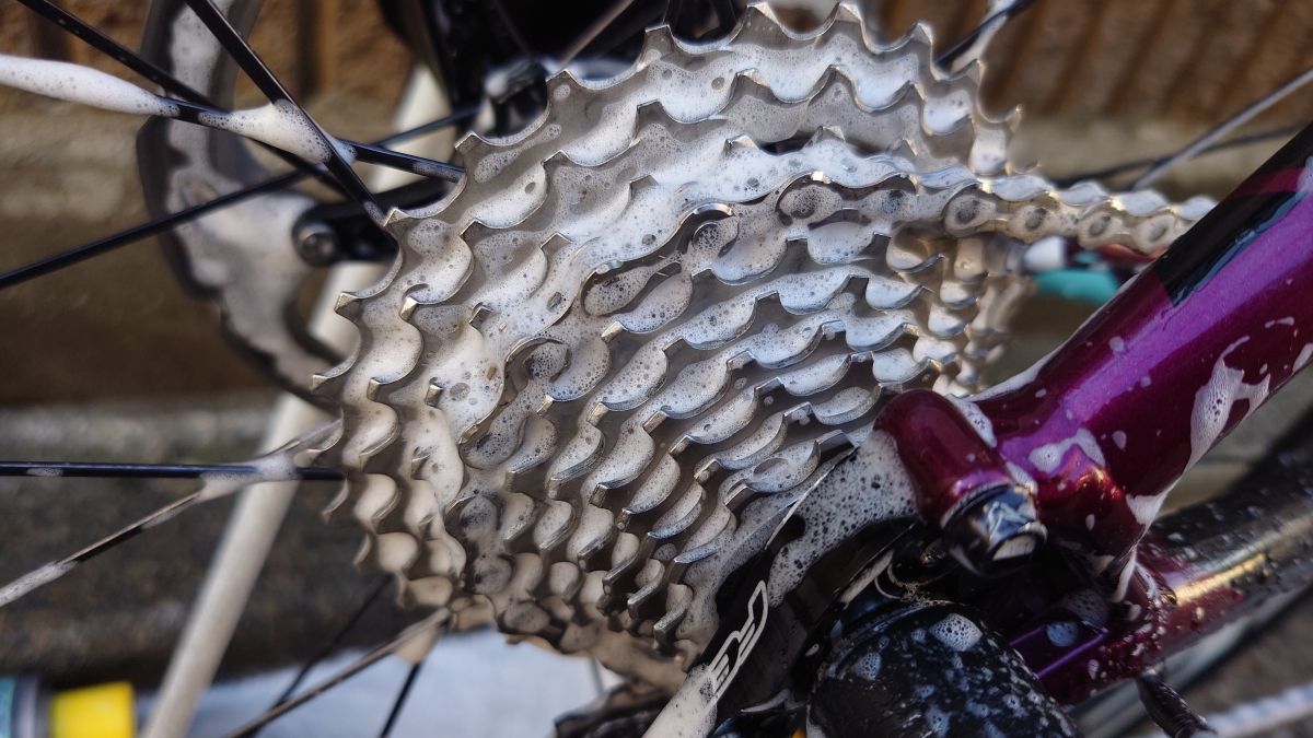 オイルはクリーナーで溶けますが、チェーンやスプロケットの内側に溜まった汚れは擦らないと落ちにくいです