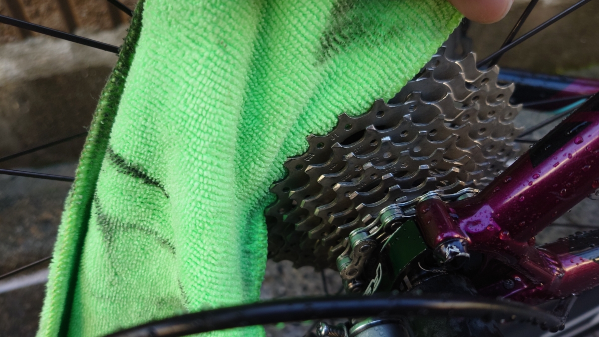 駆動系はスプロケットの隙間にもタオルを差し込んで拭き取りをすると綺麗さがさらにUP