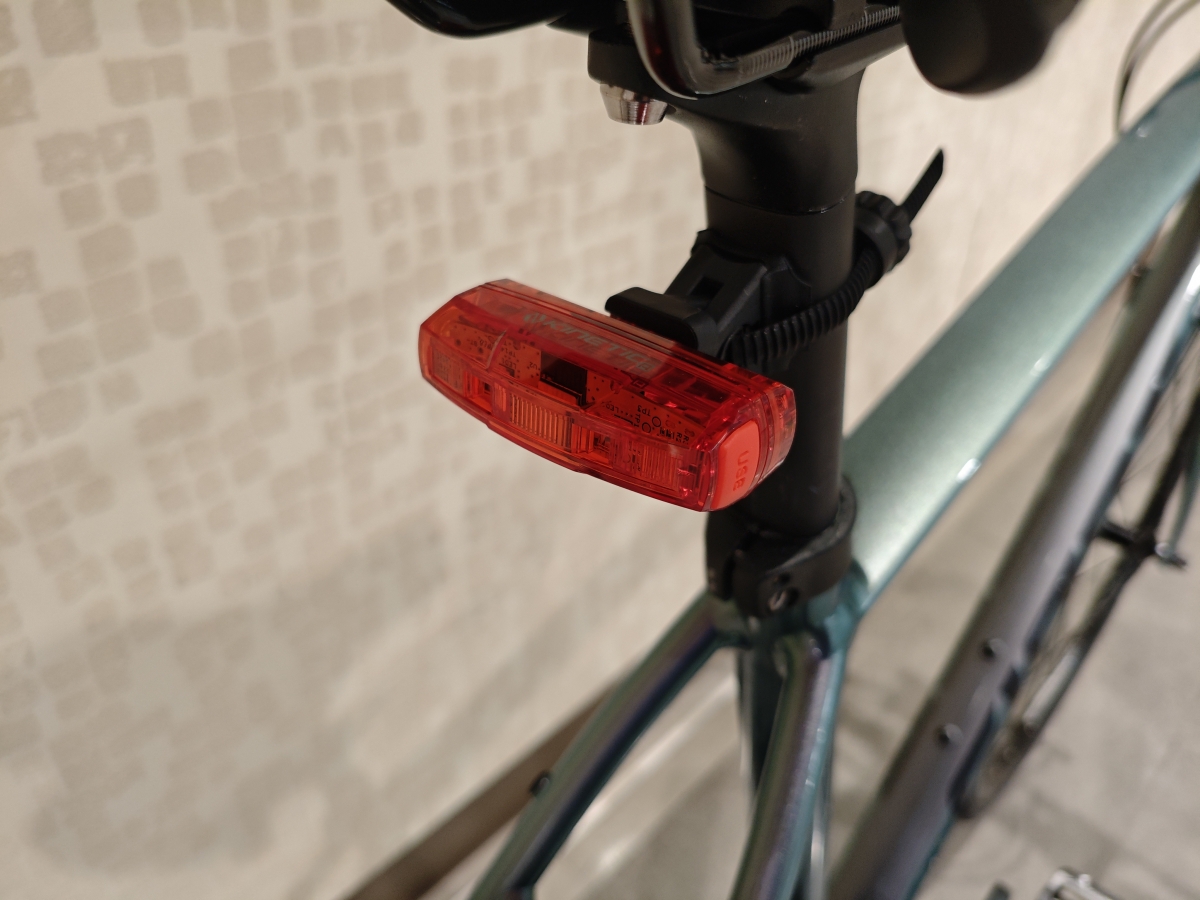 ライトは前後をアプリなしでリンクできて超便利!前をつけたら後ろも点灯しますよ!