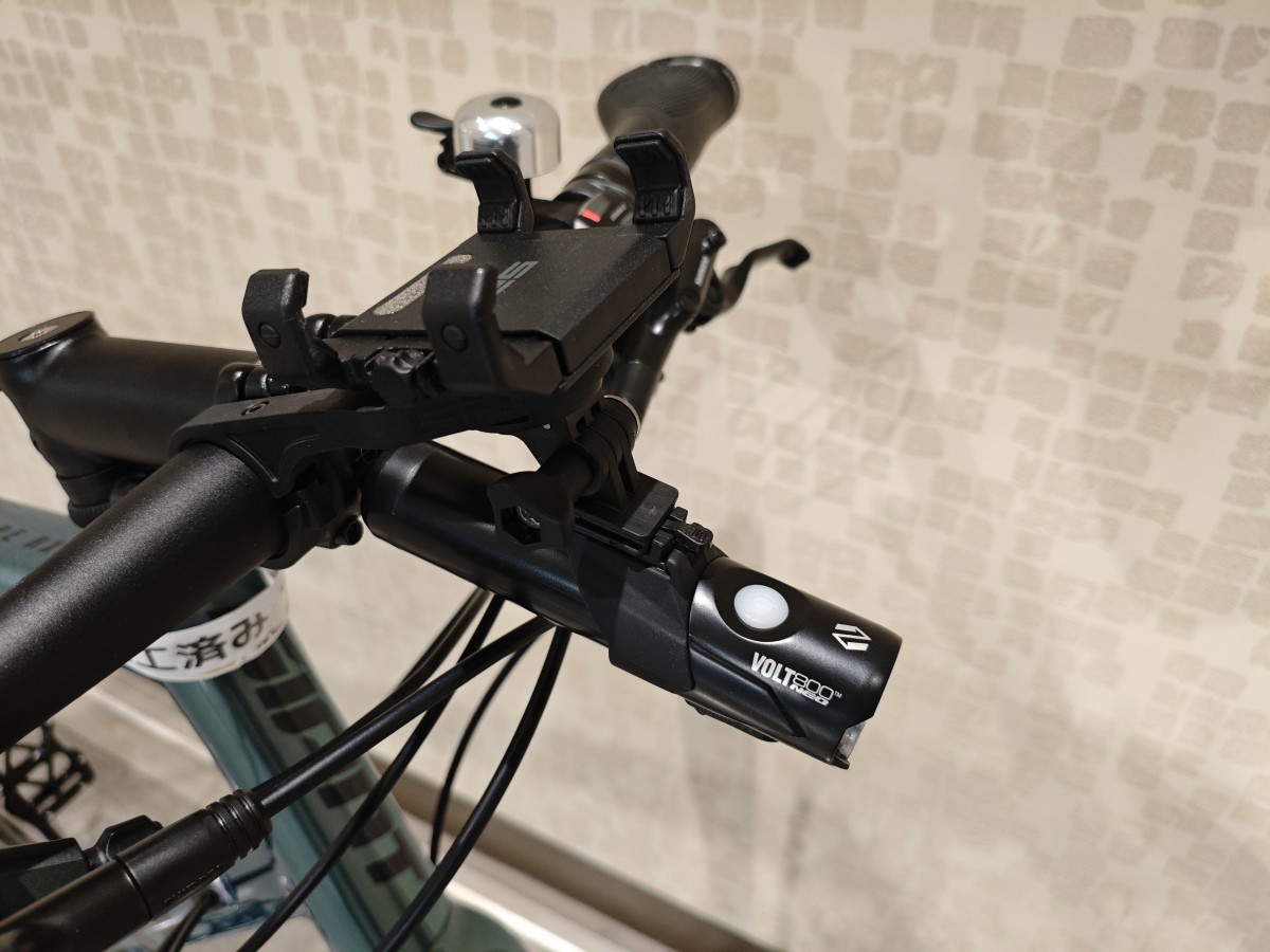 スマホマウント台座にライトを取付してハンドル周りもスッキリですね。