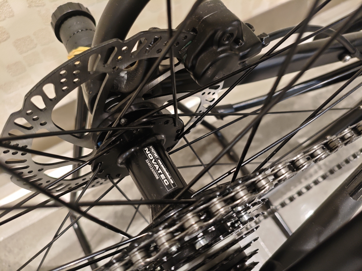 もちろんハイエンドなものではないのですが、ホイールハブはNOVATECを採用しています。このくらいの価格帯の中では良いホイールが付いていると言えますね。
