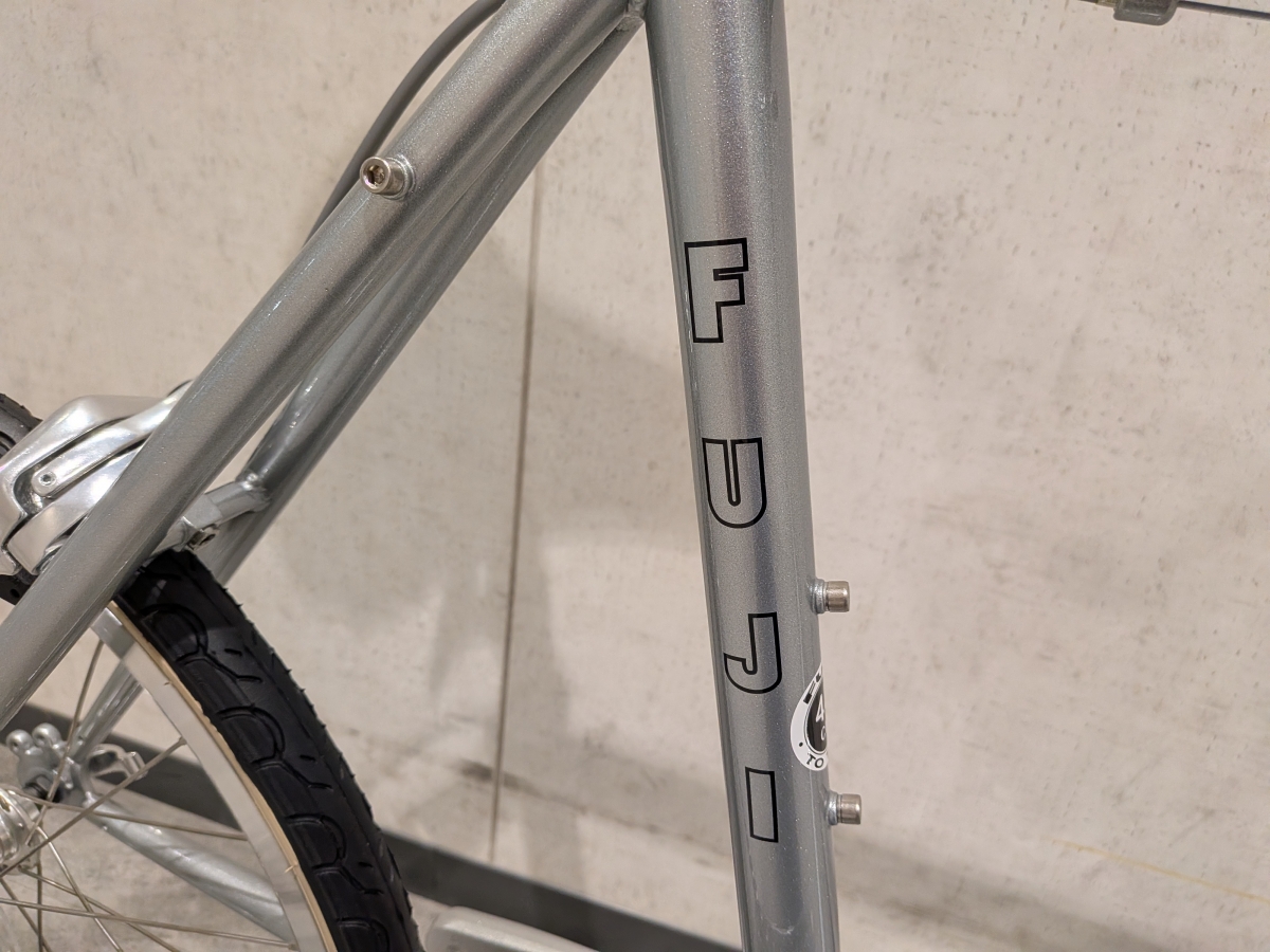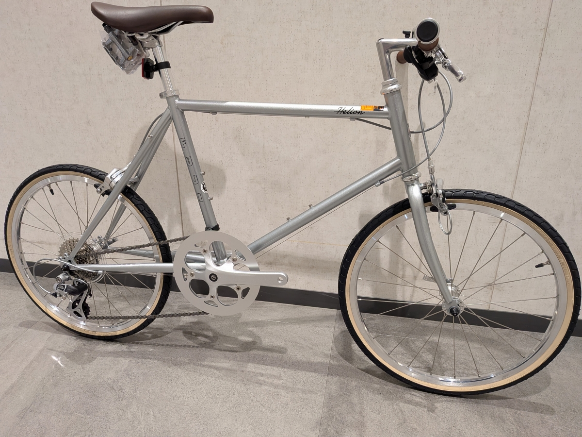 街乗りに便利なミニベロの新色がついに入荷しました。今年のFUJIはシルバー系統のカラーリングが多いので、ちょっとクラシカルな雰囲気の自転車をお探しの方にはベストな年かもしれませんね。 HELION (4)