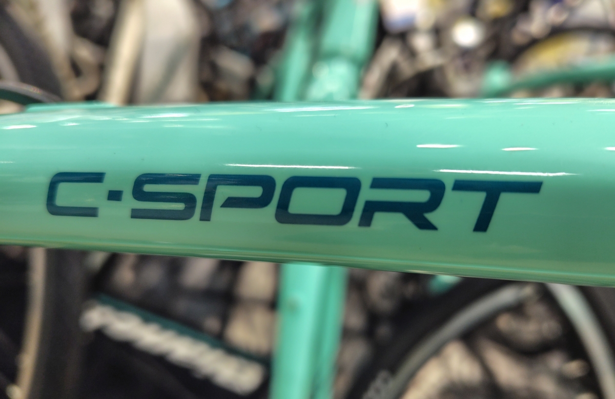 ビアンキのスタンダードクロスバイク、C-SPORT 1はVブレーキ仕様。ワイドなギヤ構成と太めの700cタイヤで通勤通学、サイクリングのようなフィットネスにも使いやすく扱いやすい車体です。グリップやサドルにチェレステカラーがさり気なくワンポイント使われています。キレイでよく見掛けるから敬遠される方もいるかと思いますが、「キレイ」「カッコイイ」「イカス(死語)」と思ったら買っちゃいましょう!