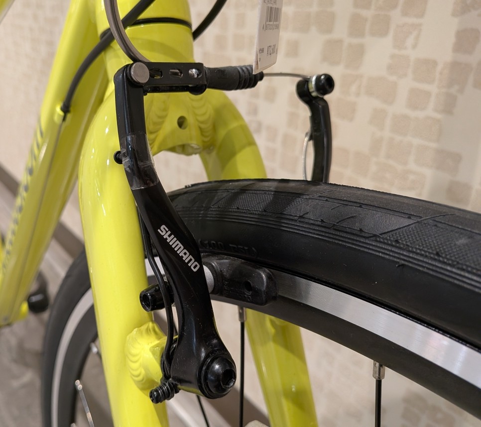 今日ご紹介するのはそんな駐輪場でも目立つネオンイエローのクロスバイクです!!