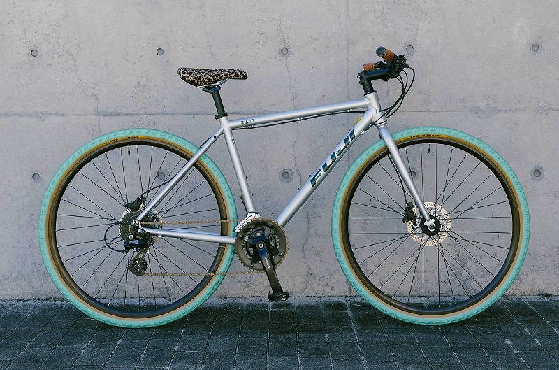 輸入元のアキボウが運営する『シフタ』サイトの中でイメージとして登場するFUJIのバイクは、たいていカスタムが施されています。上の画像のシルバーのバイクはタイヤ、グリップ、サドルを交換する事で大幅にイメージチェンジ!