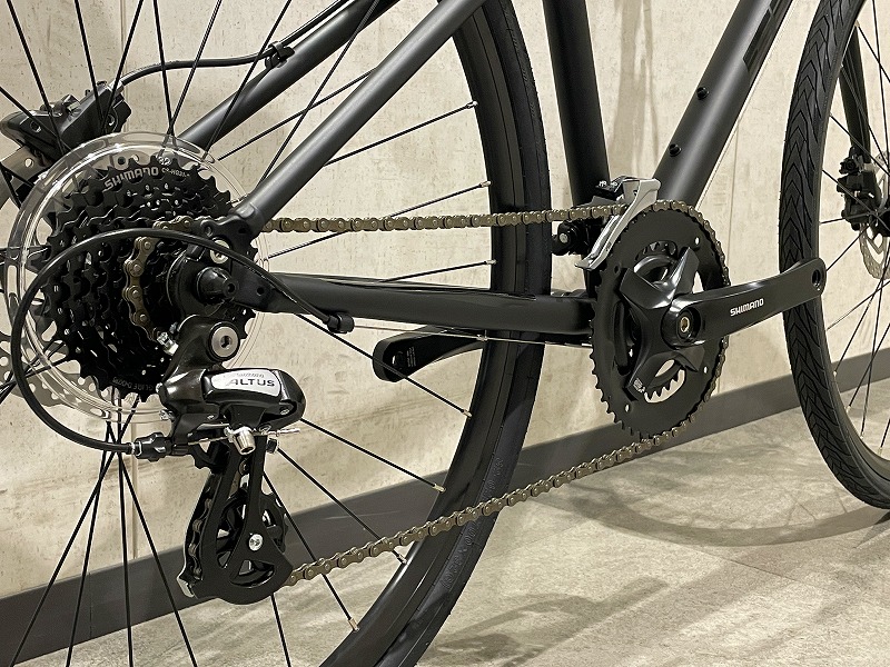 シマノ製2×8スピードを採用。街乗りからサイクリングまで十分な仕様です。