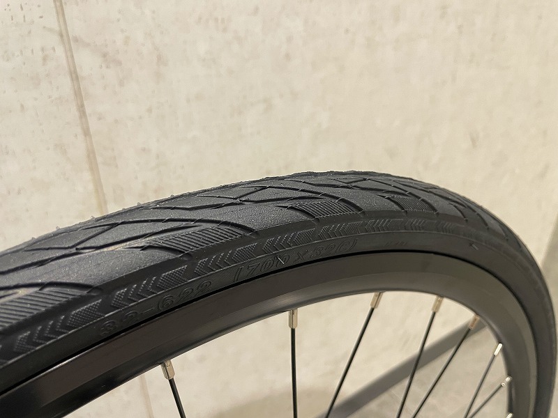 軽快かつサイプを施し安心感をもたらすパターンのタイヤを採用。太さは32ミリです。