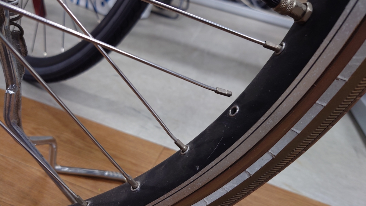 スポークも目視で曲がりが確認出来る物が複数有ったので、しっかりと修理をするならばこの辺りの部品を全て交換する事になり、価格が高額になります