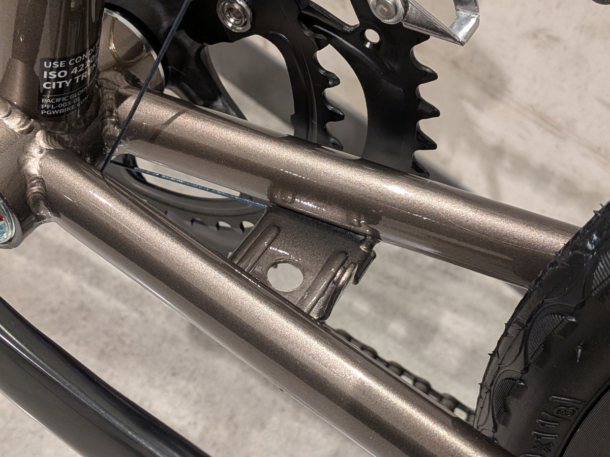 そしてフェンダーやラック用のダボ穴。これもロードバイクだとそもそも穴が開いていないこともざらです。バッグを載せたりカゴをつけたりする際にはラックが必要ですよね。スタンドと合わせて普段使い用にするならこういったところもカスタムをするといいでしょう。