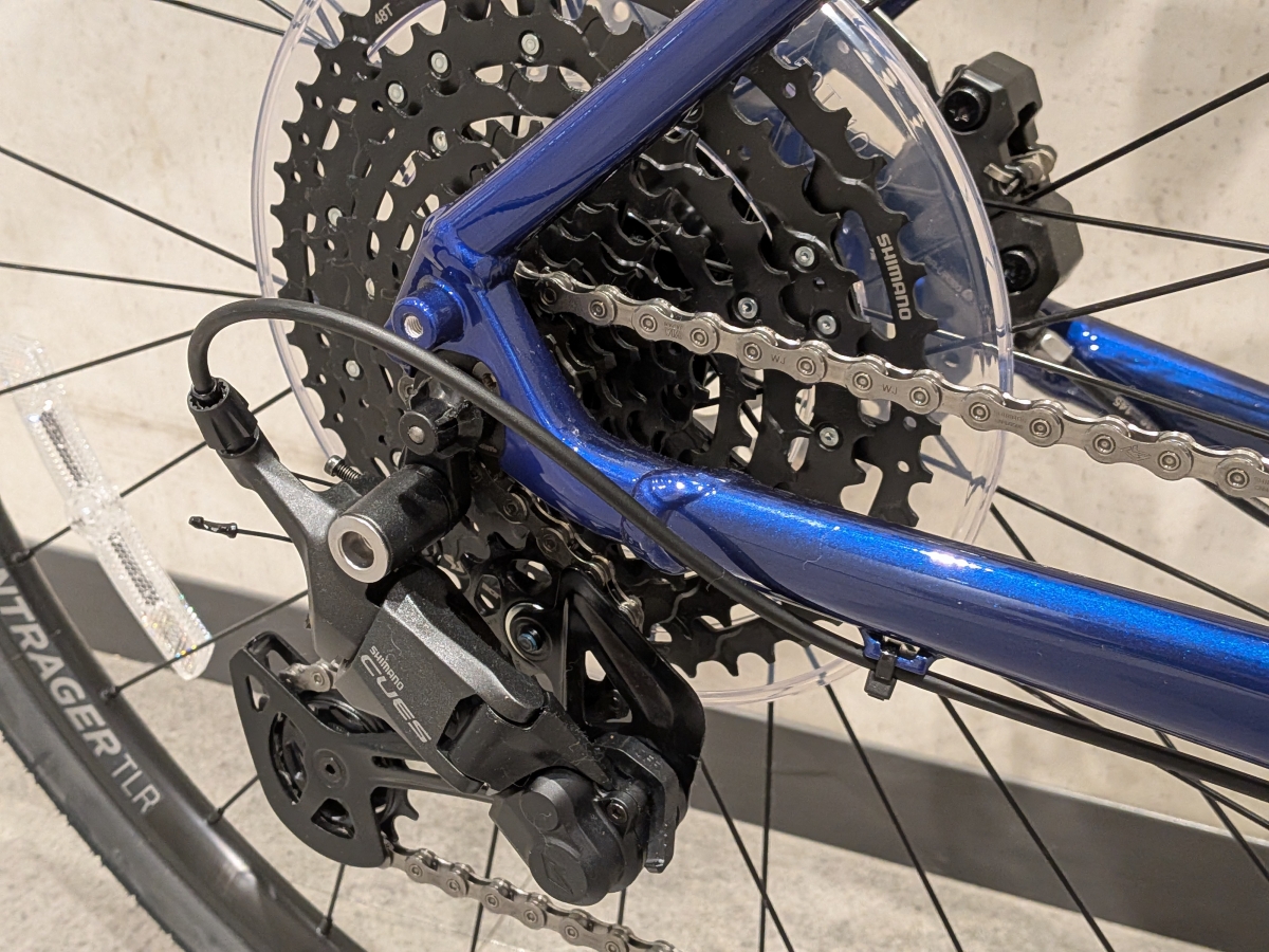 大事な変速機やブレーキにはSHIMANO製のパーツを採用しているので、修理や交換の際には安心ですね。変速機に使われているCUESシリーズは耐久性が高いことで有名ですので、長年の相棒にするにはピッタリなパーツです。
