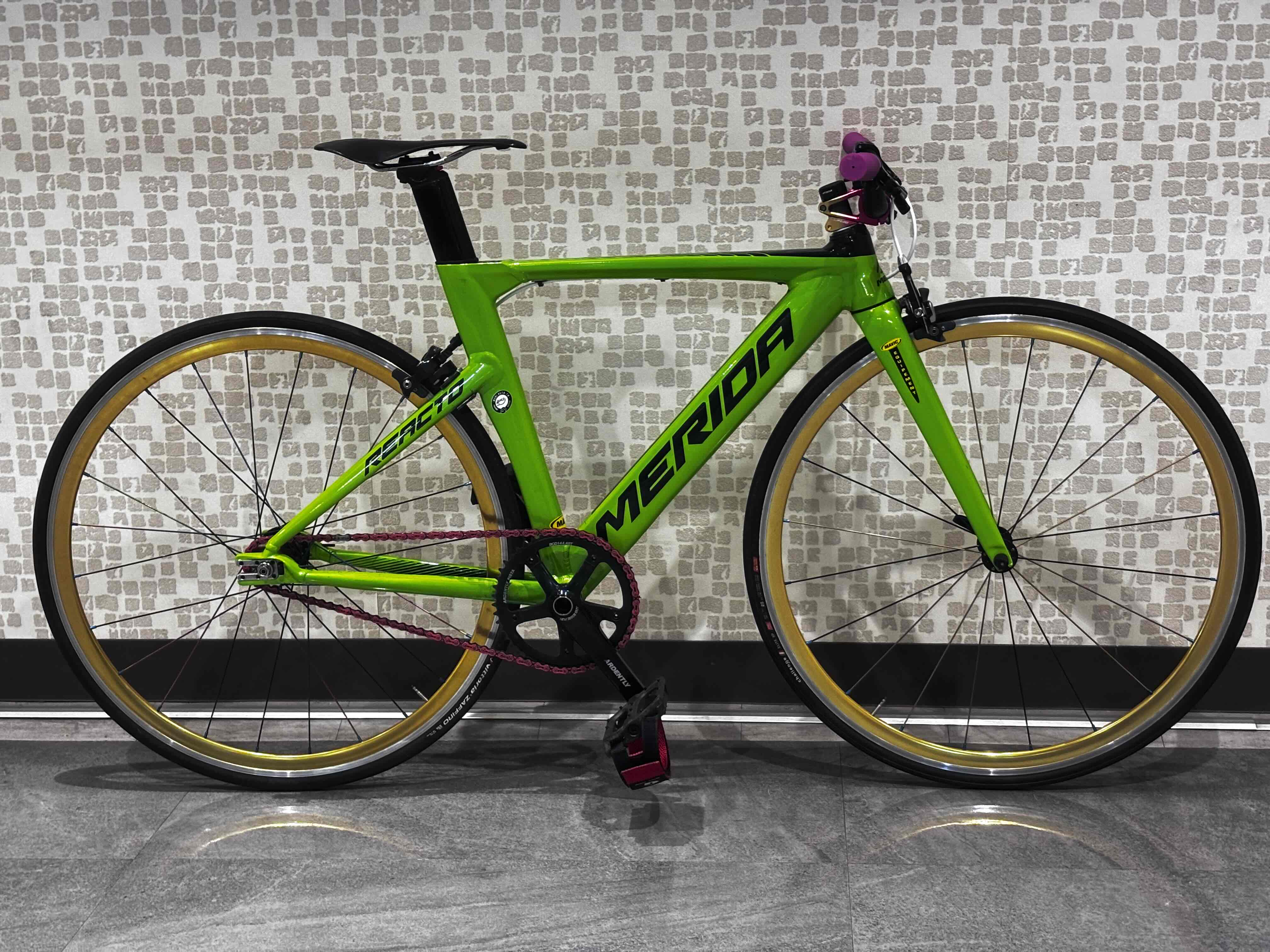 世界のプロレースを席巻したエアロロードレーサー「REACTO」のDNAを受け継ぐアルミモデルをベースにトラックレース用に作られた、このモデル!(ちなみに日本での販売期間が2-3年間ほどと短く、すでにドロップアウトしています。)
