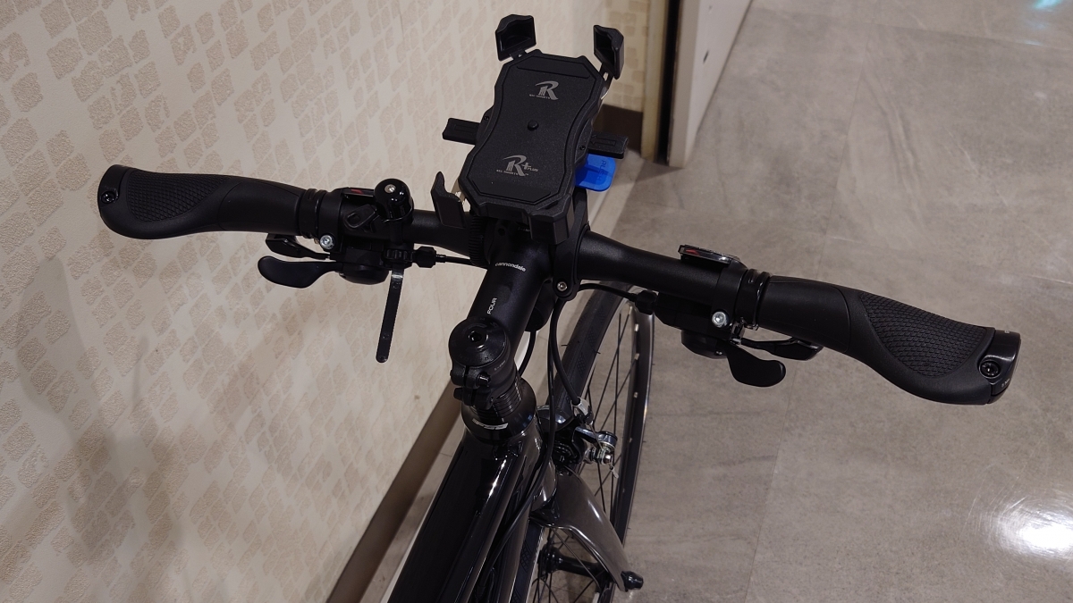 スマホマウントはREC-MOUNTSの汎用式を、互換性のあるQUAD LOCKのマウントで取付
