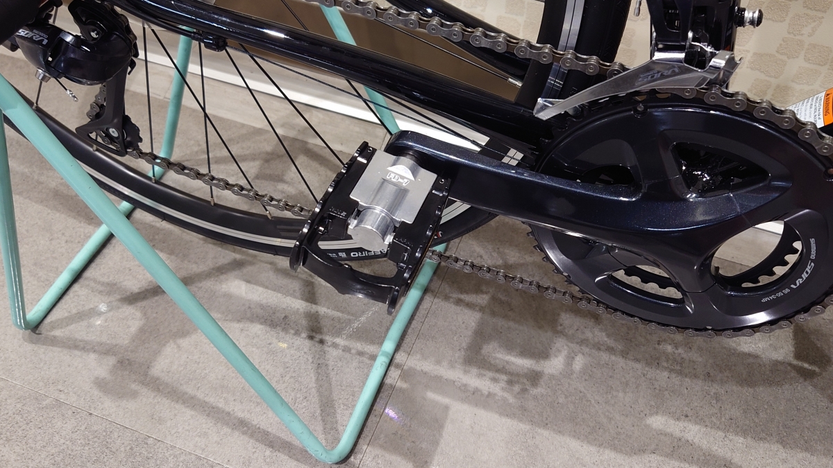 ペダルは輪行時のサイズを小さくする為折り畳み式にしました