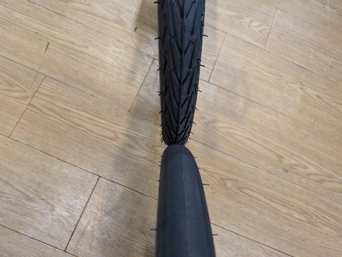 最近のタイヤサイズのトレンドは太くなっていて、昔の細いタイヤが不安なくらいです。今回は最近入荷したてのフォールディングバイクのタイヤを弄ってみました。