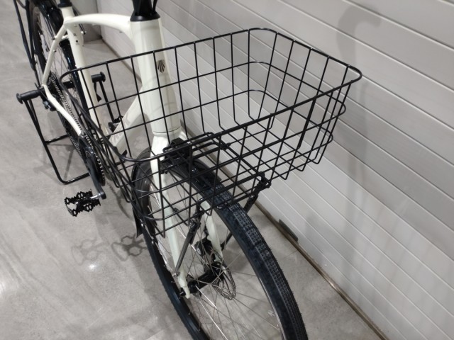 フロントバスケットは昭和インダストリーのB303ワイヤーバスケット。