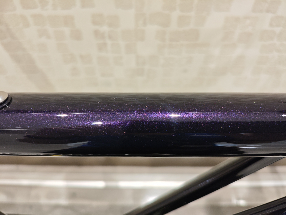 ダークパープルで、光源が少ない環境ではほとんどブラックに見えるような色味です。