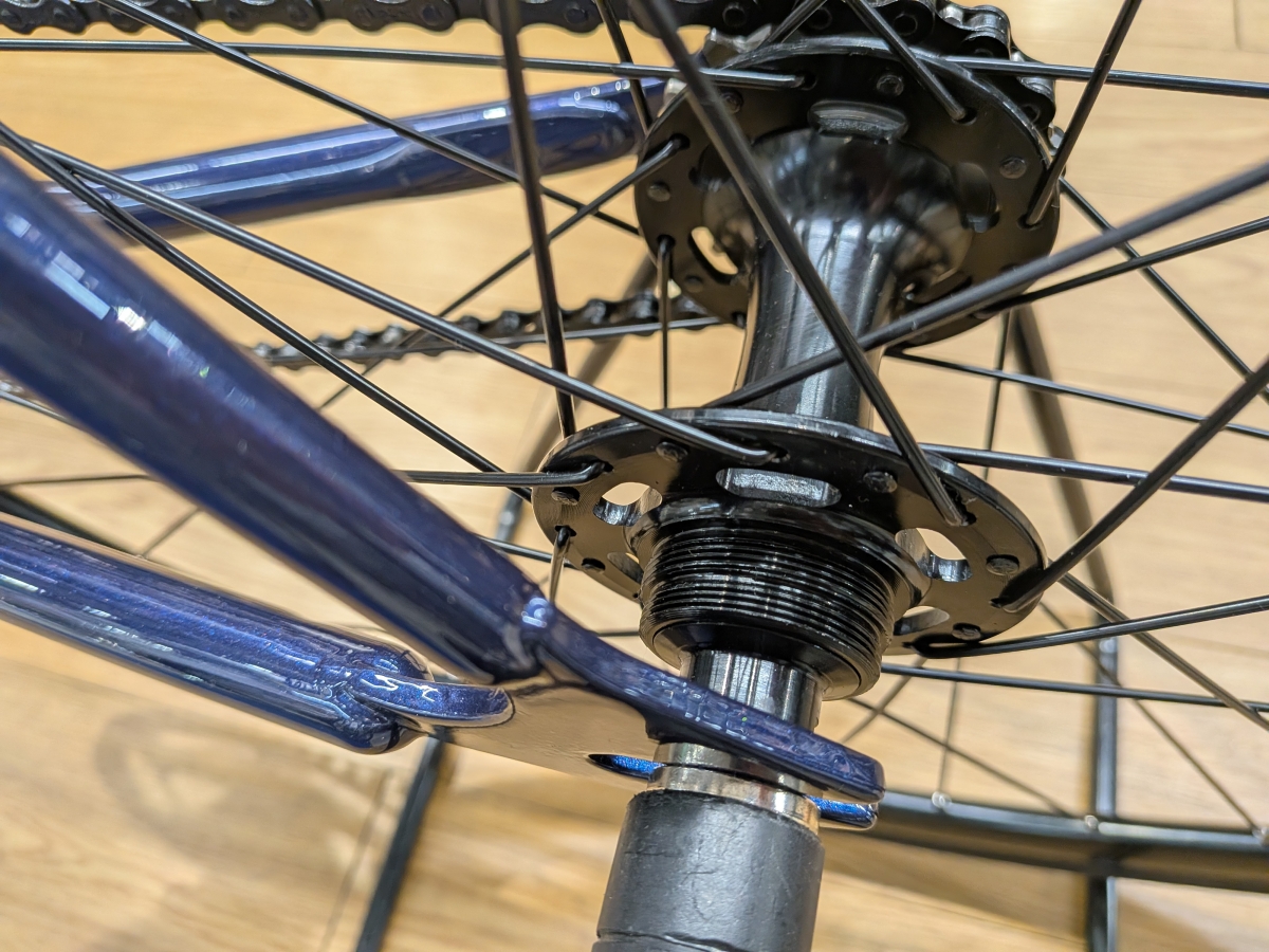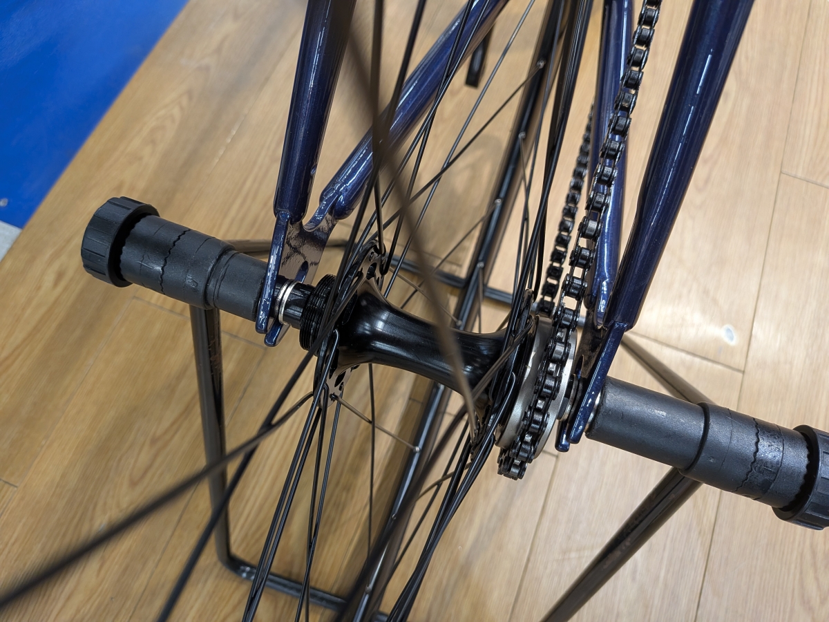 取り付けるのはフリーコグが付いているハブの逆側。ひっくり返せばフリーコグと固定コグを行き来できるので、やっぱり戻したい!という時にも便利です。