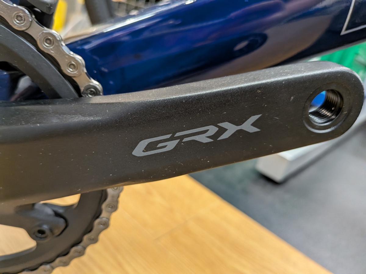 変速周りはクランクからリアディレイラーまでGRXで統一。特にクランクは走行性能に直結するパーツですので重要です。