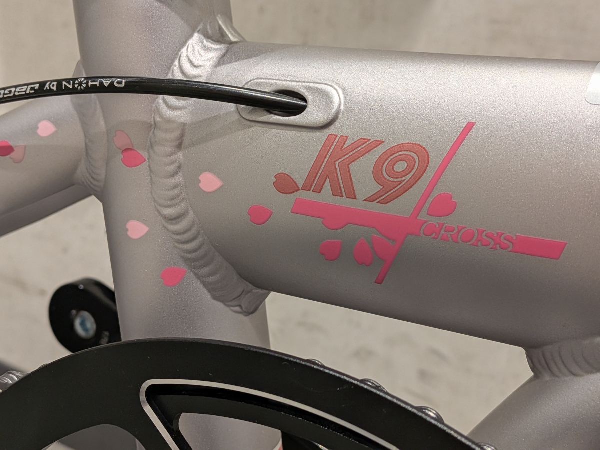昨年のピュアリティー ピンクはフレーム前方のみがピンクカラーでしたが、今年は桜エディションということで、全体的にカラーリングが変わりました。また、ロゴデザインやデカール周辺にも桜の花びらがちりばめられています。