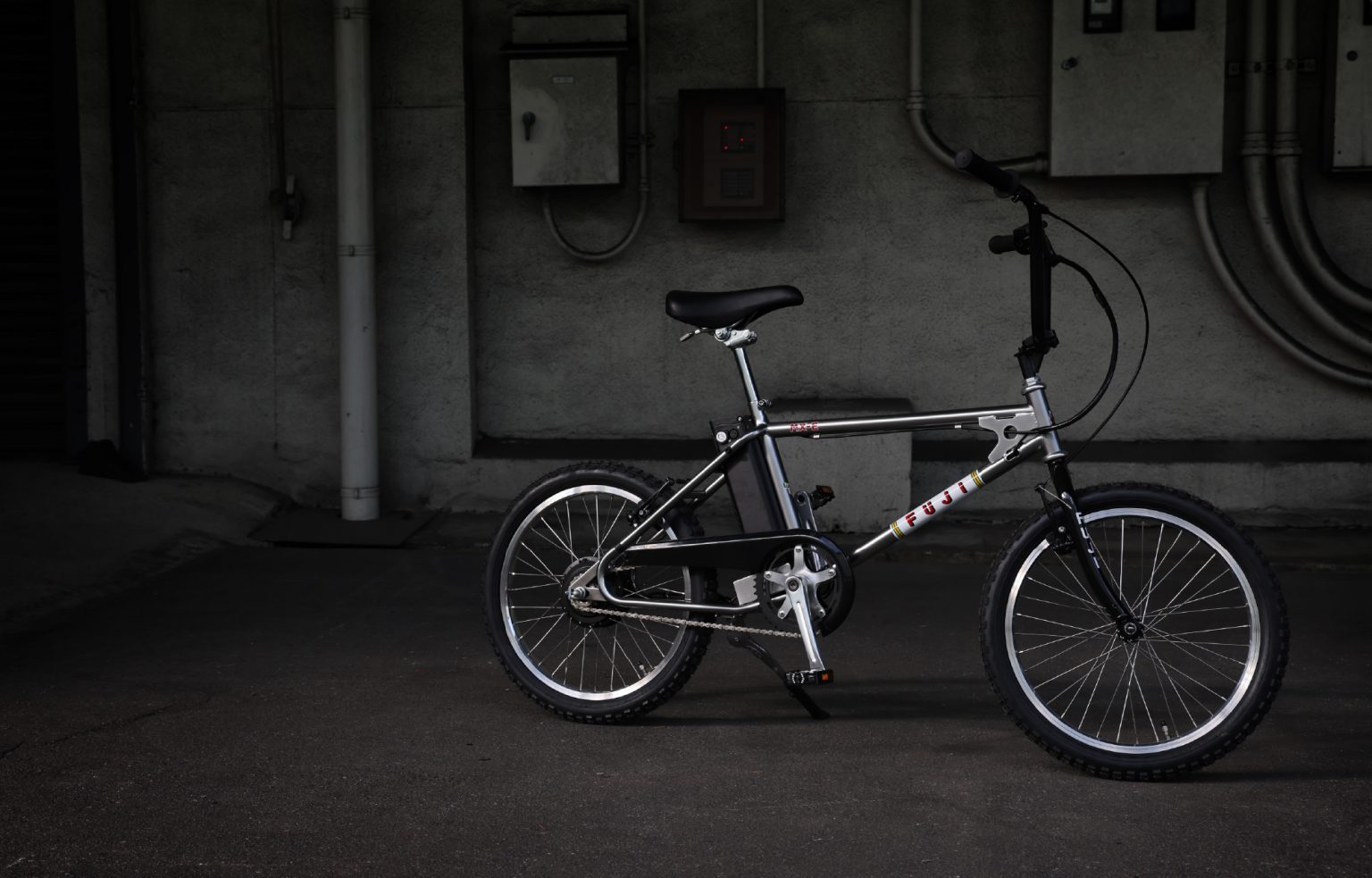 【FUJI】話題のBMXスタイルなE-BIKE、かっちょいいスチールシルバーが入荷予定です。