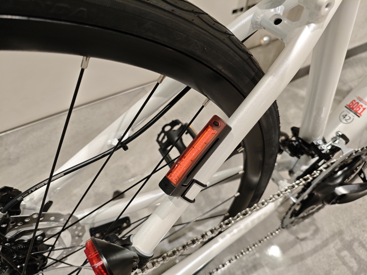 Fライトは最大750ルーメンの暗い道でも安心なもの、Rライトはシートポスト以外にも取付可能で視認性が高いものをセレクト!