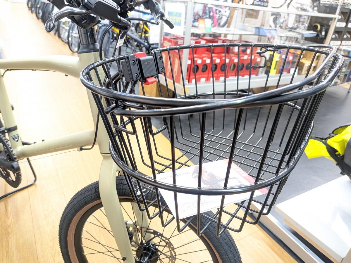 バスケットは当店でも人気の高いニューワイヤーバスケットを取り付け。お買い物にちょうどいい感じのサイズ感なので、迷ったらとりあえずコレ!って感じです。