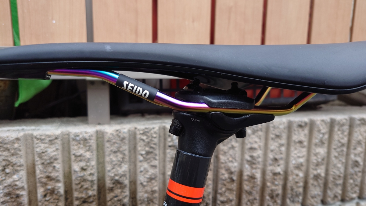 「派手さの少ないシンプルな機能美」という方向性のブランドでもあるのですが、今回使ったサドルはレール部分がオイルスリックカラーという遊び心が隠されています