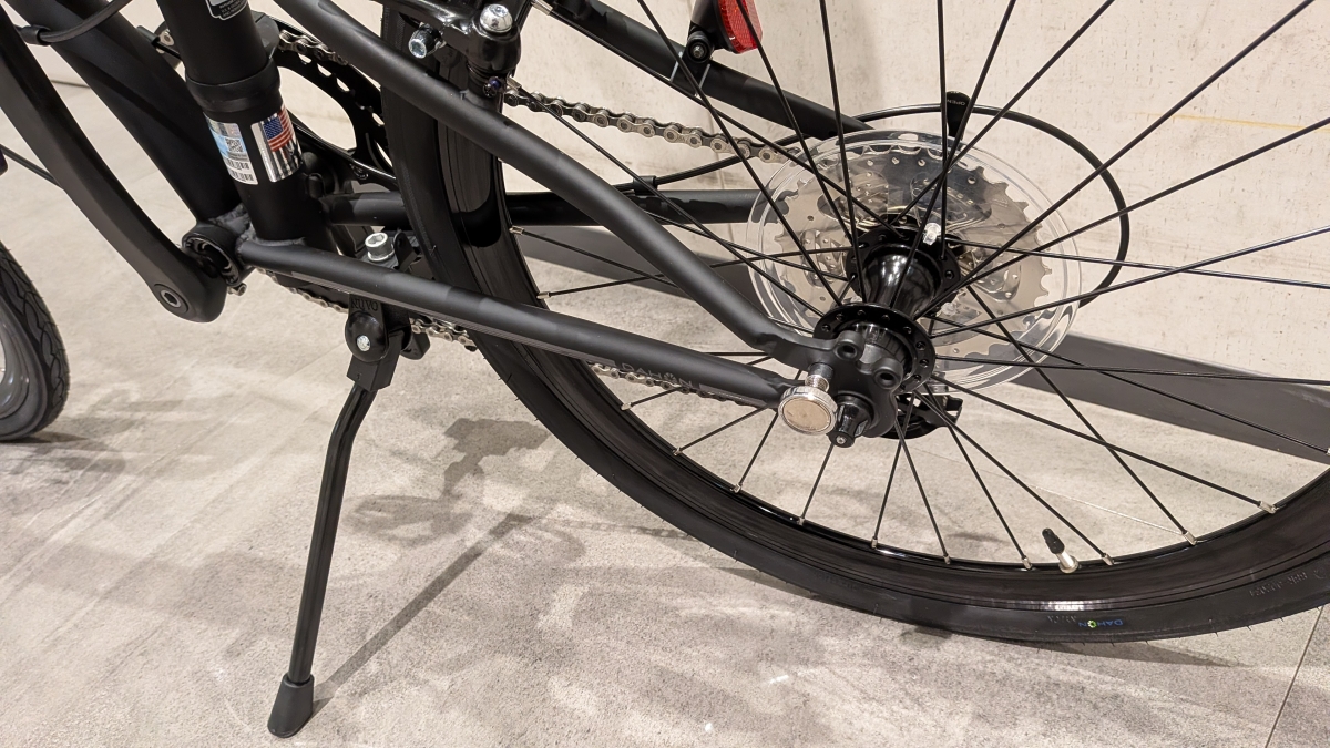 フェンダーやリアラックを取り付けて普段使いをもっと便利に出来ちゃいます。折り畳みにも影響しないので、利便性を損なわない形になっています。自分好みにカスタマイズできるのがスポーツバイクの楽しみ方の一つ。詳しくはスタッフまでご相談ください!!