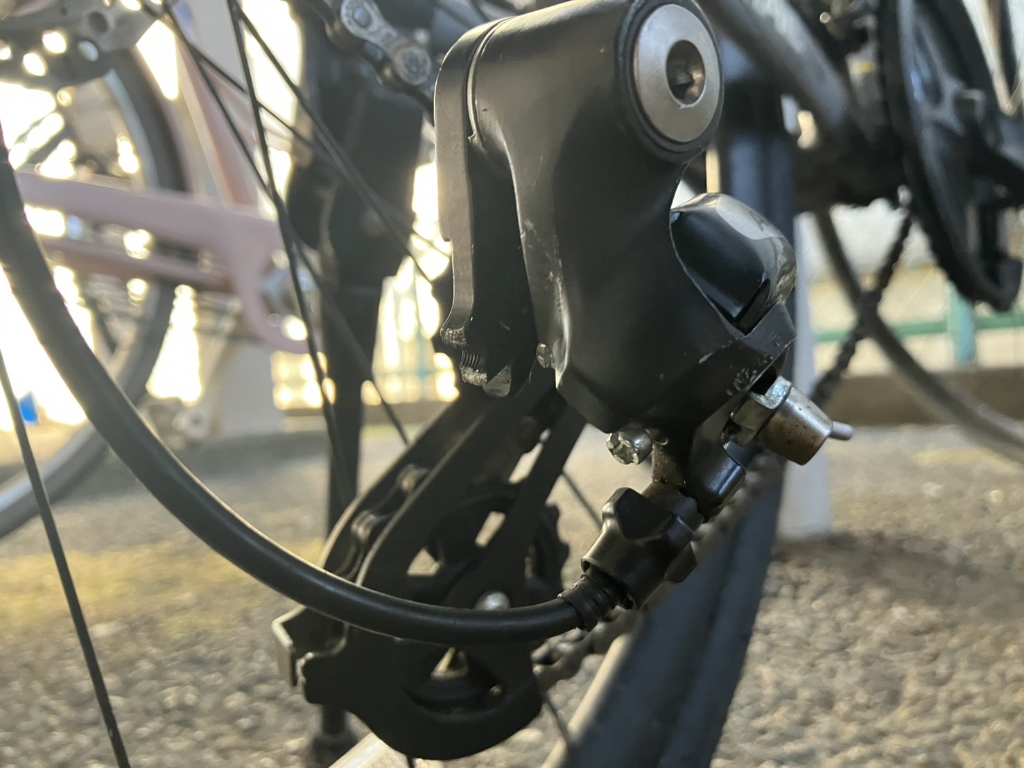 恐らく今回は駐輪場での転倒などで繰り返し衝撃が加わってハンガーが変形していた。