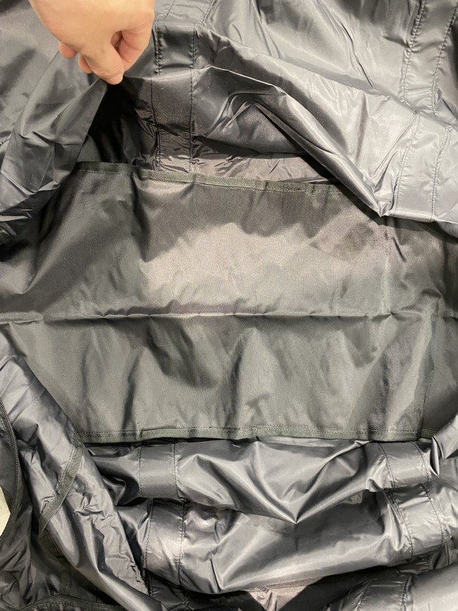軽量な輪行袋の共通の弱点は生地が薄く破れやすいところ。この輪行袋は車体の重さを支える部分、地面と擦れる部分など特に強度が求められる箇所は頑強なPVC素材などを使用しています。その分ややかさばりますが前述の懐が深い外袋のおかげで収納には苦労しませんでした。