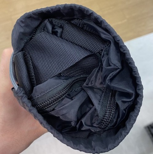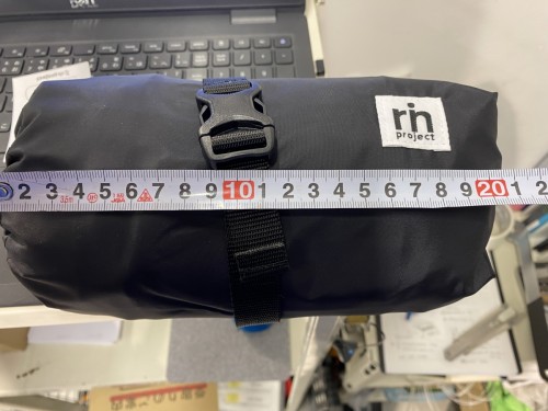 輪行における最大の難所。使い終わった袋をたたんで収納するところですね。数多の人々がこの段階でつまずき約束の時間に遅刻したという伝説が遺っています。