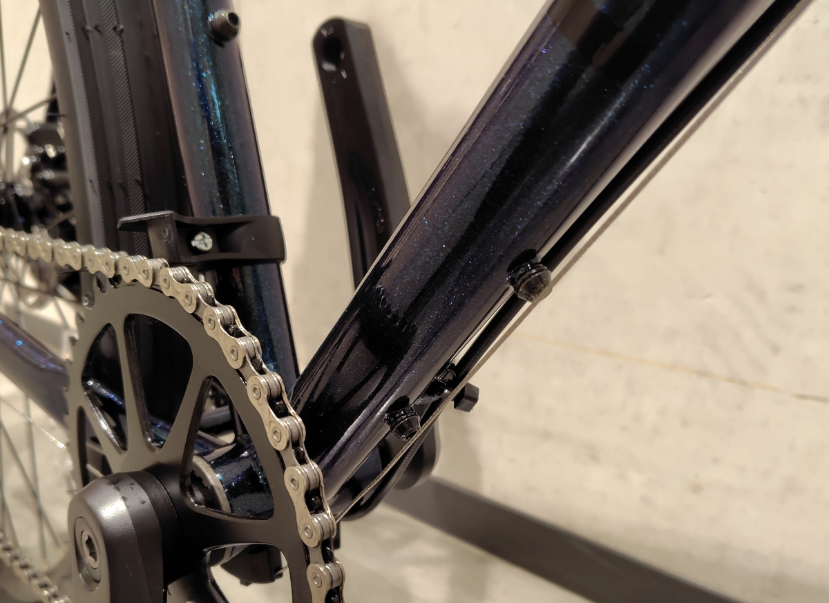 NICASIO SEはツーリング等にも使いやすい、高い拡張性があります。フロントキャリアの他、フロントフォークのサイドにあるボルトはボトルケージやフォークマウントのラックが取付けできます。もちろんフェンダーも取付可です。