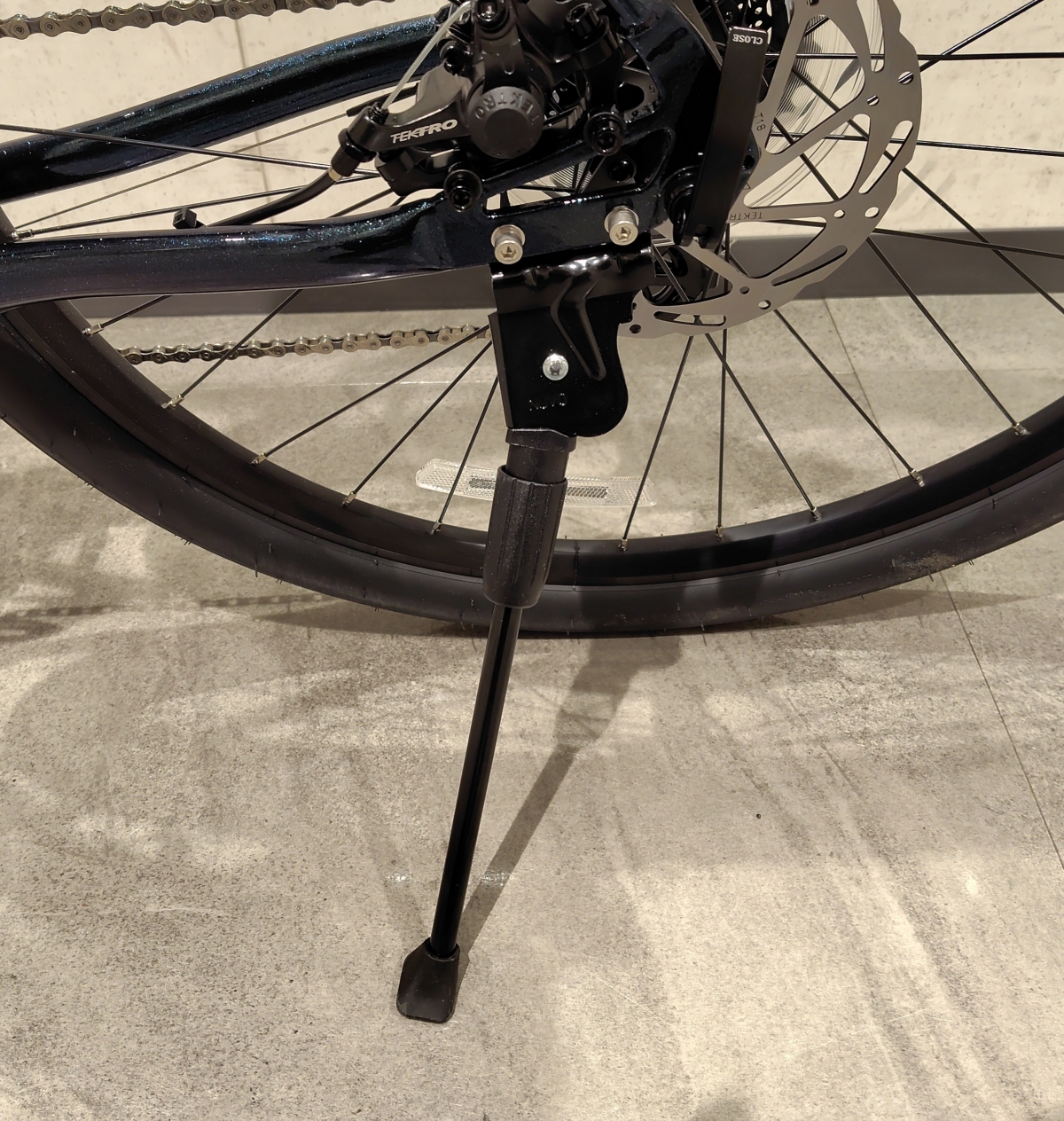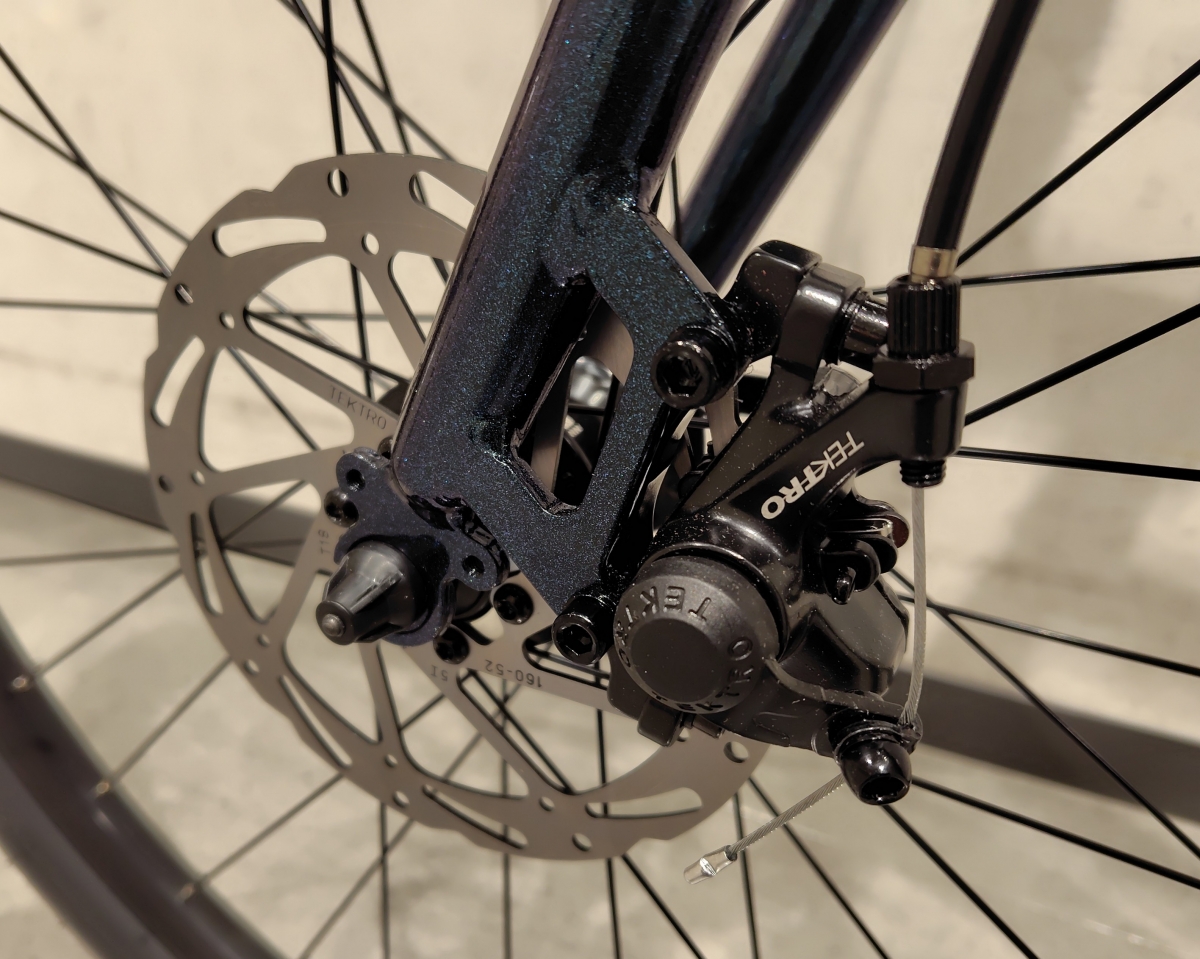 ブレーキはテクトロのワイヤー引きのメカニカルディスクブレーキが採用されています。ワイヤー引きですが、レバータッチは軽く、使いやすいディスクブレーキです。