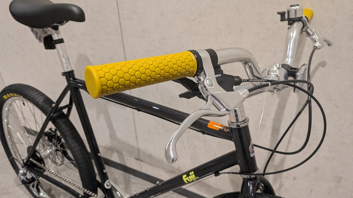 自転車の快適度を上げるパーツとして良く挙げられるのが、「サドル」「グリップ」「ペダル」の3点。カラーカスタムをするならグリップという事でFABRIC HONEY のイエローをチョイス。形こそベーシックな物ですが、握った時のグリップ感や耐久性の高さが魅力的。