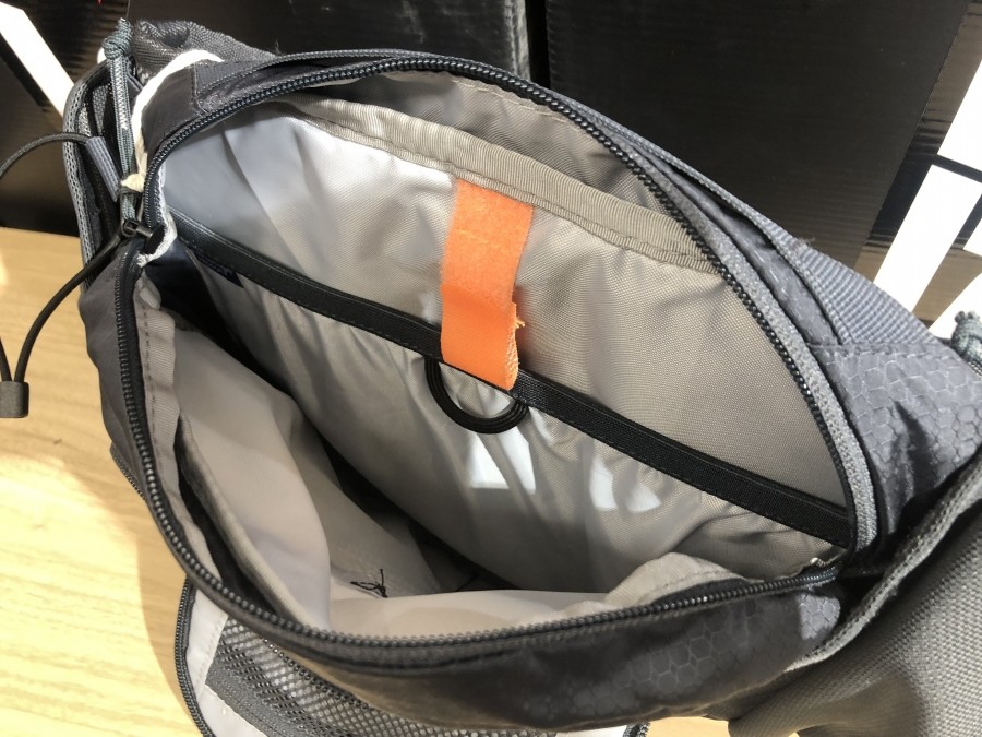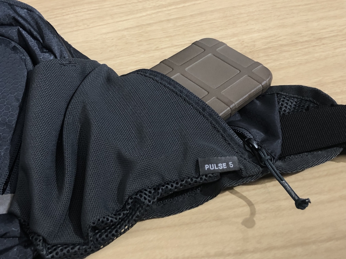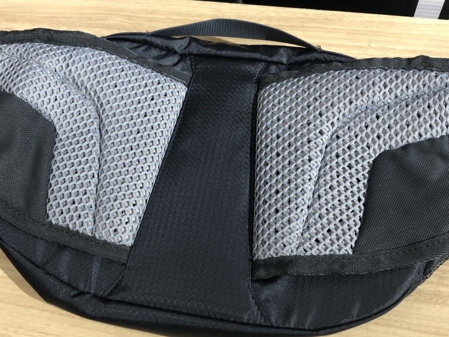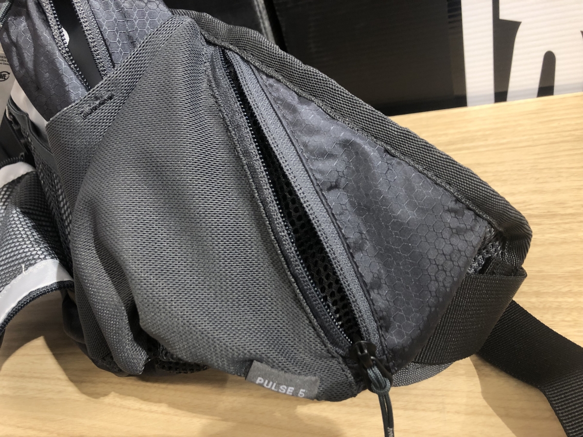 バックパックとは違いショルダーストラップはありませんが、腰にしっかりホールド。それでいてちょっとしたバックパック並みの総容量5リットルで、ジャージのバックポケットだけでは物足りない時に最適です。