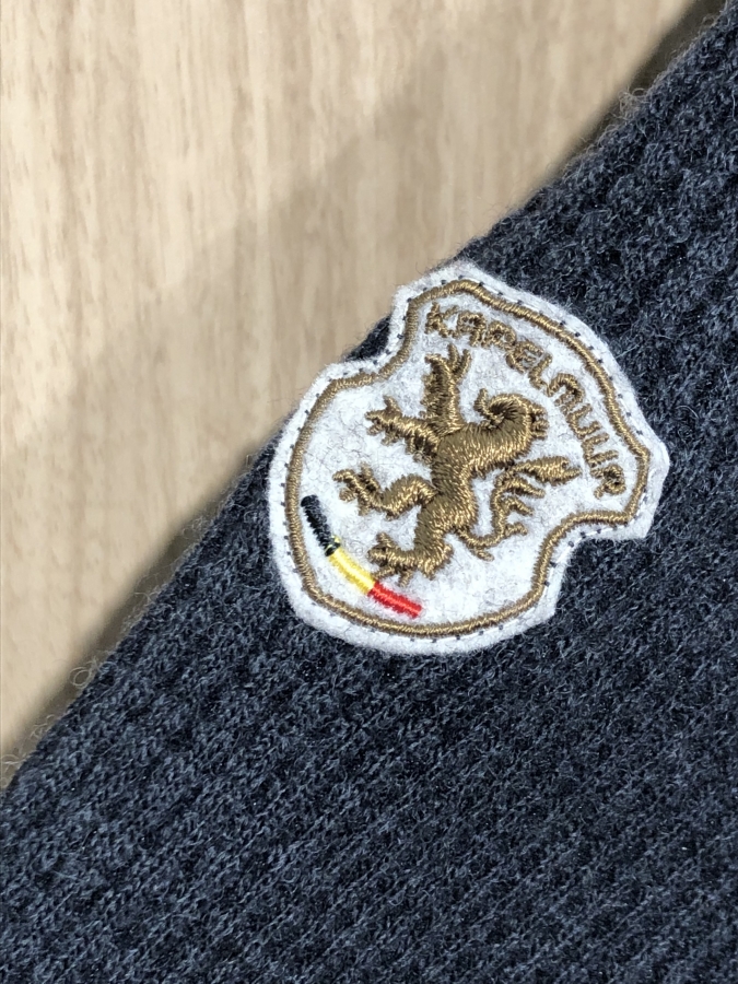 肩のエンブレムは刺繍のワッペンで、高級感を引き上げています。
