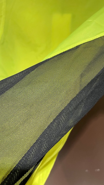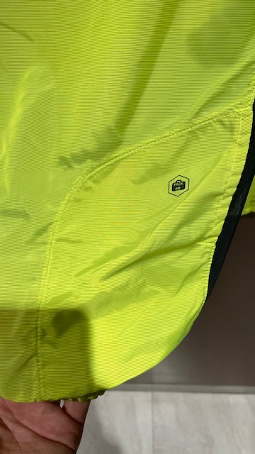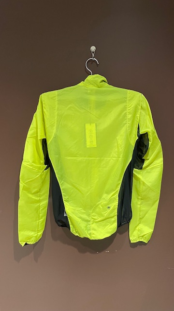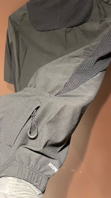 非常に軽く薄い防風素材と、腕の動きを助けるように配置された通気を確保するためのメッシュ生地で構成されたウィンドブレーカー。