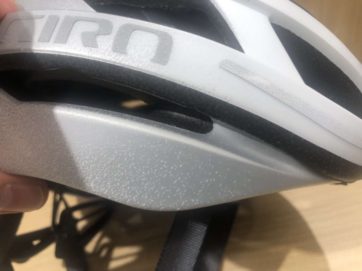 危険回避の装備もしっかり。後ろ側には反射材が張り付けられています。
