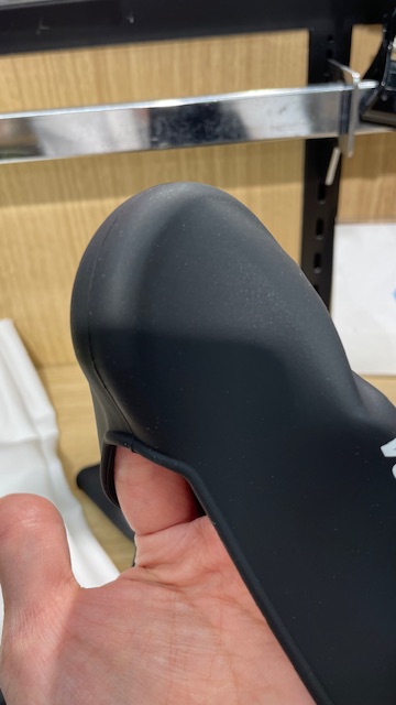 その他強度が必要なかかと部分、つま先部分は意図的に厚みを持たせることで強度を確保(写真2,3枚目)。
