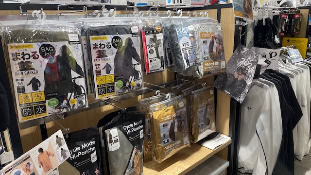 意外と難しい自転車に乗る時の雨具選び、是非当店でご相談くださいませ。