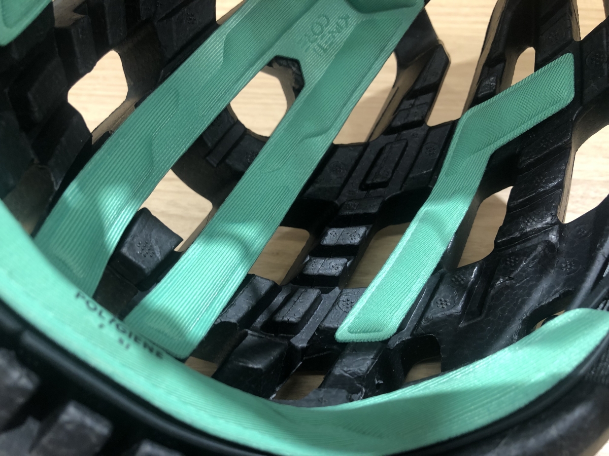 衝撃吸収フォームにはKinetiCoreと呼ばれる回転衝撃保護が組み込まれています。衝撃吸収フォームに計画的に溝を掘り、回転衝撃を受けた際に曲がったり潰れたりすることで衝撃を吸収します。溝は空気が流れる道にもなり、快適性も向上していますよ。