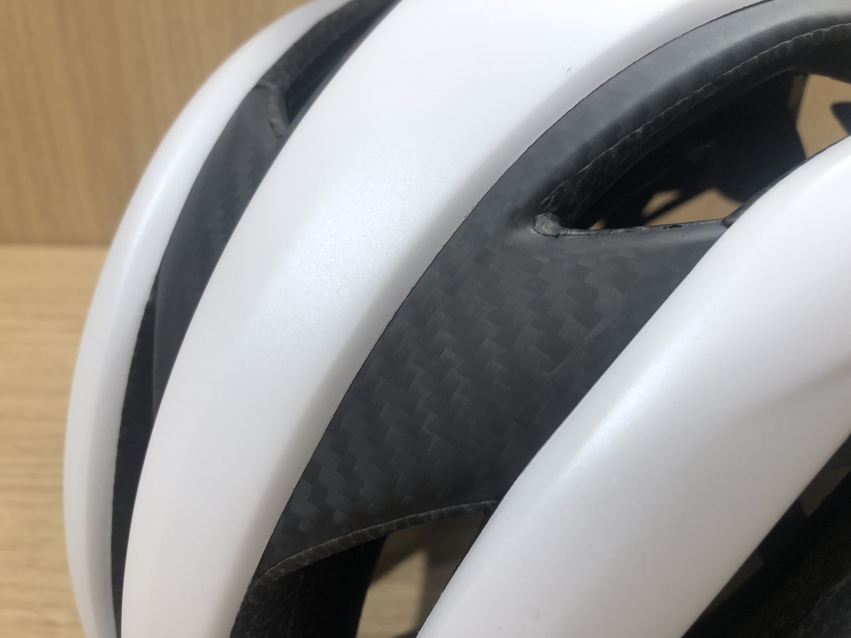 安全性を確保しつつベンチレーションホールを増やし、通気性と軽量性を確保。さらにシェルの強度に関係のない箇所も切削されるなど、ほんの数gの軽量化を突き詰めています。