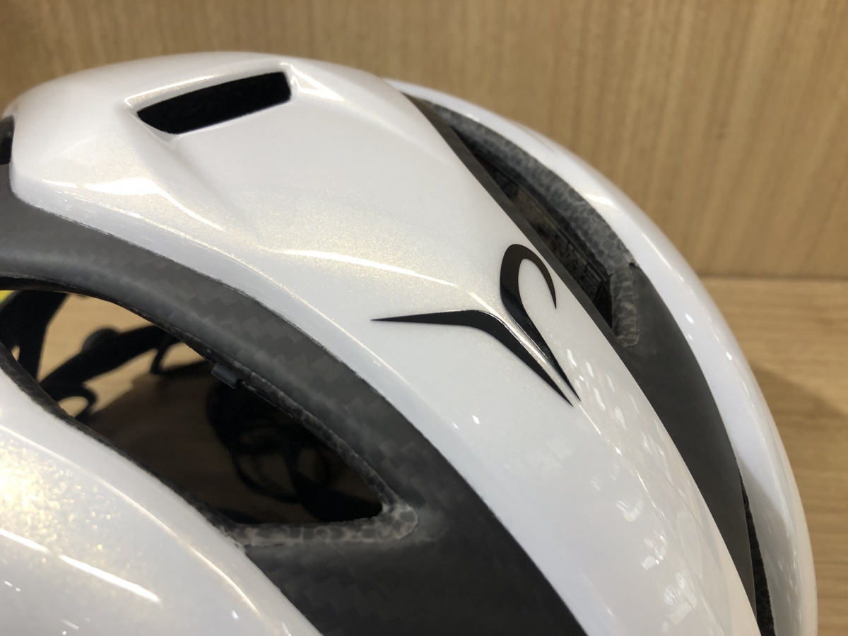 カーボン+ポリカーボネートシェルカバーはその弾力性を活かし軽量化に成功。その分内部衝撃吸収フォームの密度を下げる事により、軽量ながら空力的にも高性能‼NACAベンチレーションにより、ヘルメット内の空気の流れも整えられて蒸れずに涼しく快適です‼