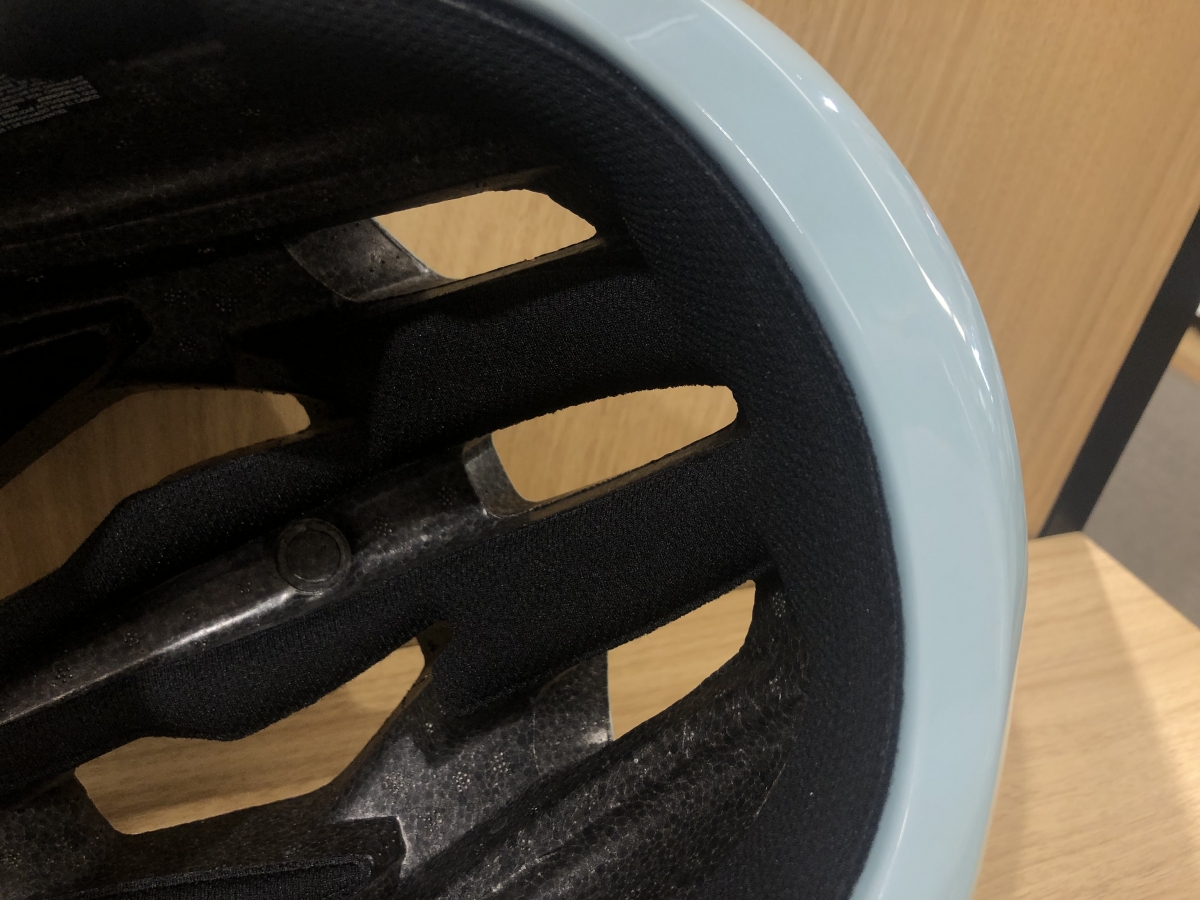 ヘルメットの表面、アウターシェルは上面につなぎ目が無い一体成型。シェルがつなぎ目から割れ、衝撃吸収フォームがさけるのを防ぎます。つるっとまるいデザインはスポーツヘルメットながら色んな服装にも似合うデザインです。