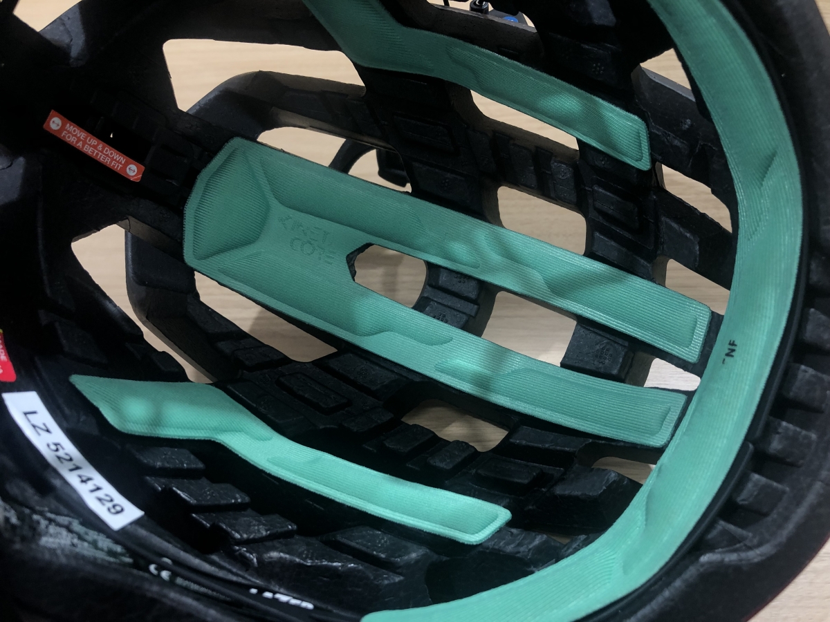 安全面ではLAZER自慢の「KinetiCore」システムを搭載。凸凹に形成された衝撃吸収フォームが衝撃の方向に潰れたり曲がったりすることで、さまざまな方向からの衝撃に対応します。