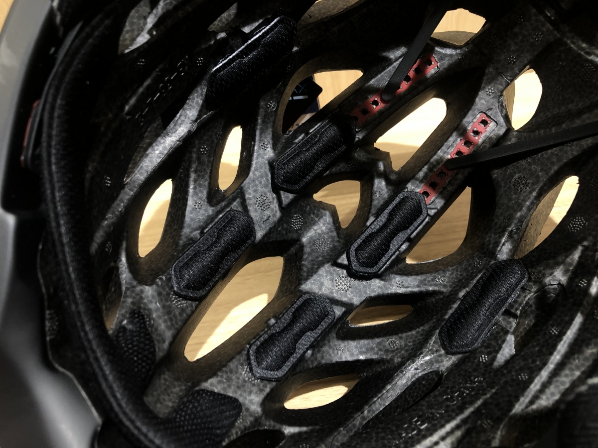 頭から少し浮くよう、パッドの形状と配置が設計。その隙間に効率よくシェルのエアホールから空気が入り流れることで、ヘルメット内は涼しく快適です。