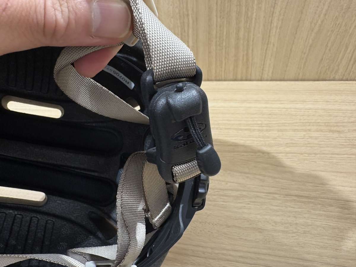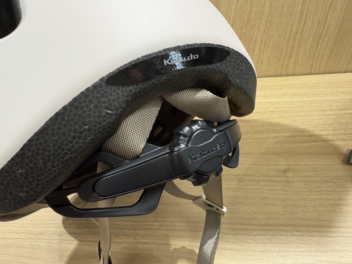 使い勝手の良いダイヤル式アジャスターで頭へのフィット、固定もしっかり。
