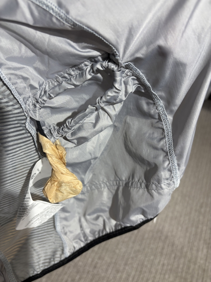 左内側にポケッタブル機能付き。簡単にポケットサイズに折り畳めるので、いつでもジャージのポケットにいれておけます。