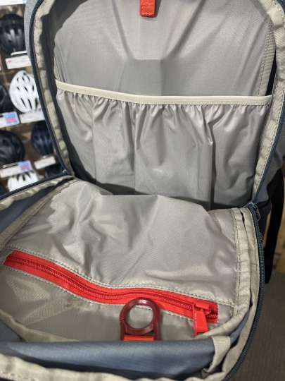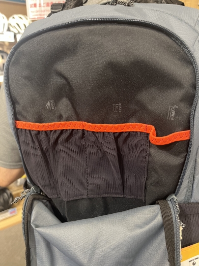 フラットで伸縮性のあるメッシュポケット/ジップサイドポケット/ヘルメットホルダー/ジャケットの収納やトレッキングポールの取り付けなどが可能な3つの機能を持つマルチファンクション・ドローコードを装備/背面とショルダーストラップには3Dメッシュ/反射材/ハイドレーションシステムポート/レインカバー装備