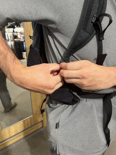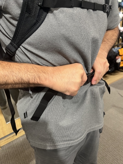 ①②でウエスト位置もある程度調整できていますがショルダーベルトで微調整してウエストベルトの位置を腰の高さに合わせます。